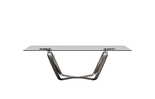 Extendable dining table with metal-reinforced composite base and top available in various material configurations.